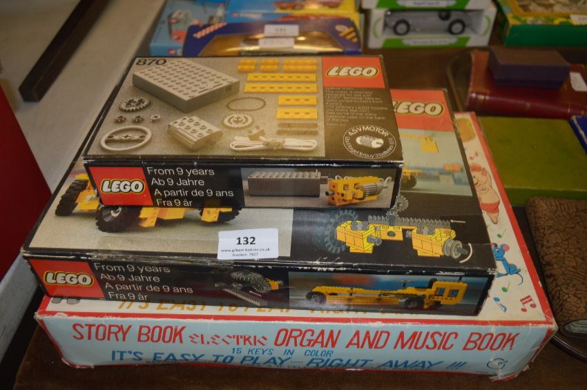 Two Boxed Lego Building Sets and a Toy Organ