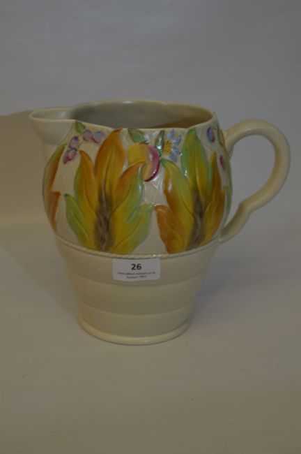 Clarice Cliff Newport Pottery Jug with Leaf & Floral Decoration