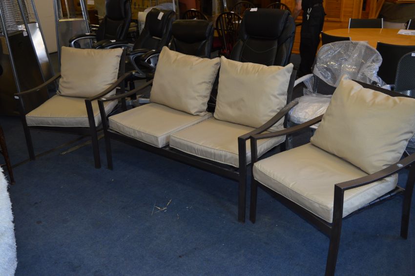 *Metal Framed a Cushioned Three Piece Patio Suite