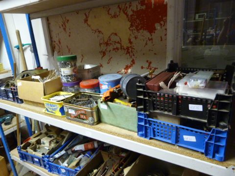 Contents of Shelf; Twelve Boxes of Various Springs, Drill Bits, Pipe Cleaners, Rachet Straps, etc.