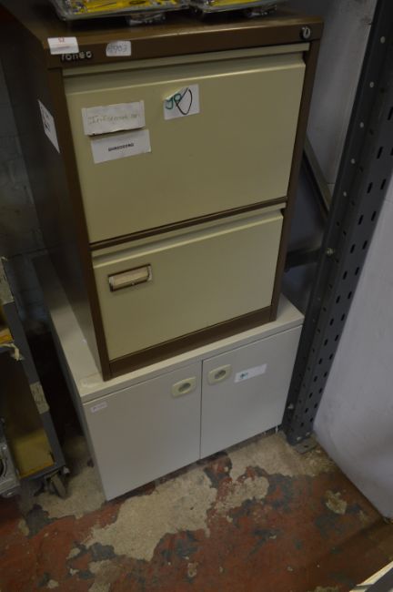 Two Drawer Foolscap Filing Cabinet and a Metal Cabinet on Wheels
