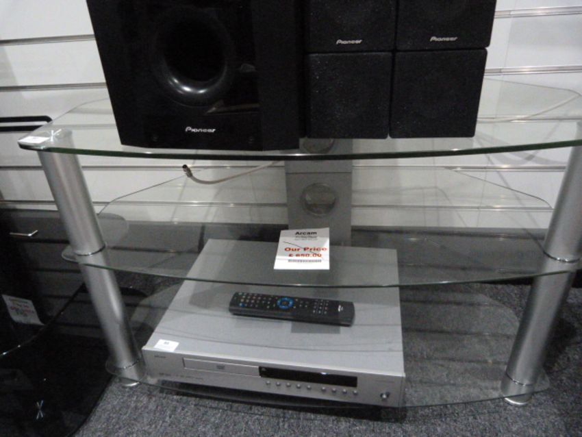 *Three Tier Plate Glass TV Stand on Brushed Stainless Steel Supports