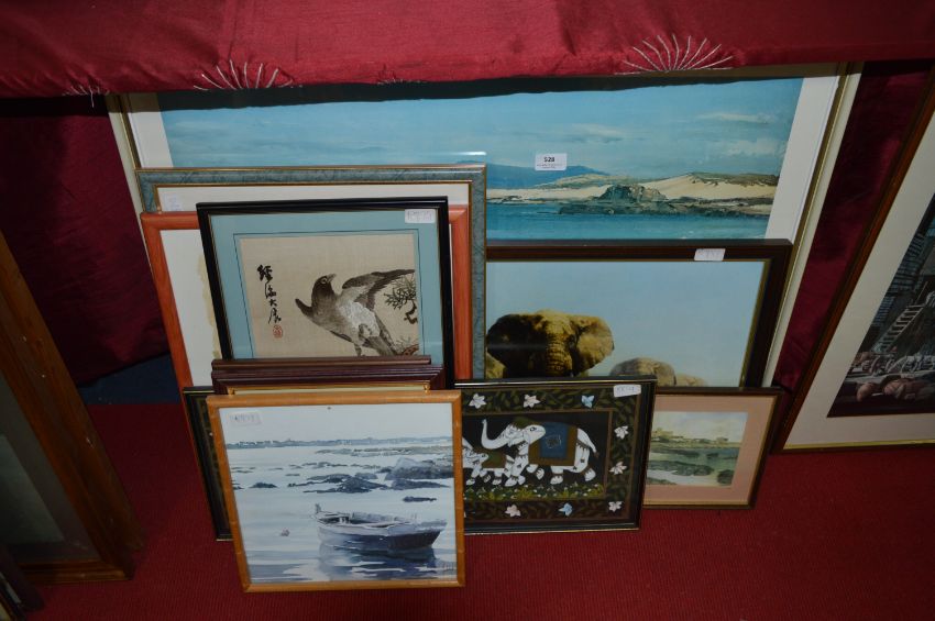 Selection of Framed Prints; Elephants,Coastal Scenes, etc.