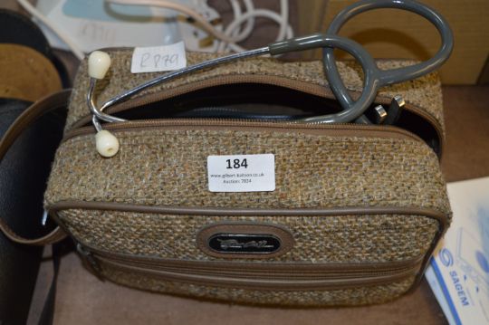 Doctors Bag Containing Heart Pressure Gauge, Stethoscope, etc.