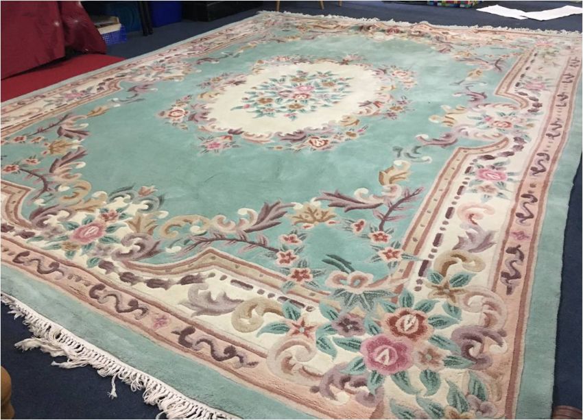 Large Chinese Green Floral Pattern Rug 142x107"