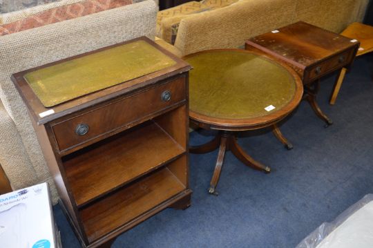 Mahogany Side Cabinet, Circular Occasional Table with Green Leather Top and Small Side Table
