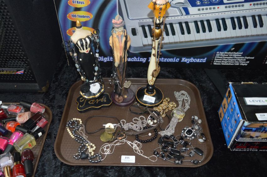 Tray Lot of Costume Jewellery and Jewellery Stands
