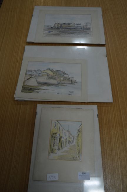 Set of Three Watercolors "Coastal and Village Scenes" Appledore by C. Petherick