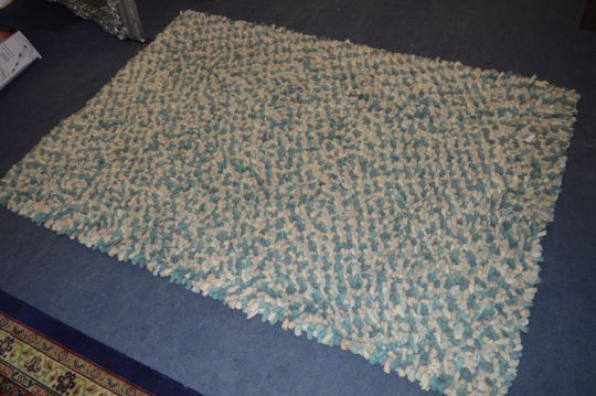 Multicoloured Blue Bobble Wool Rug 66x46"