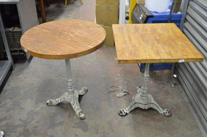 A Circular and a Square Topped Tables with Cast Metal Bases