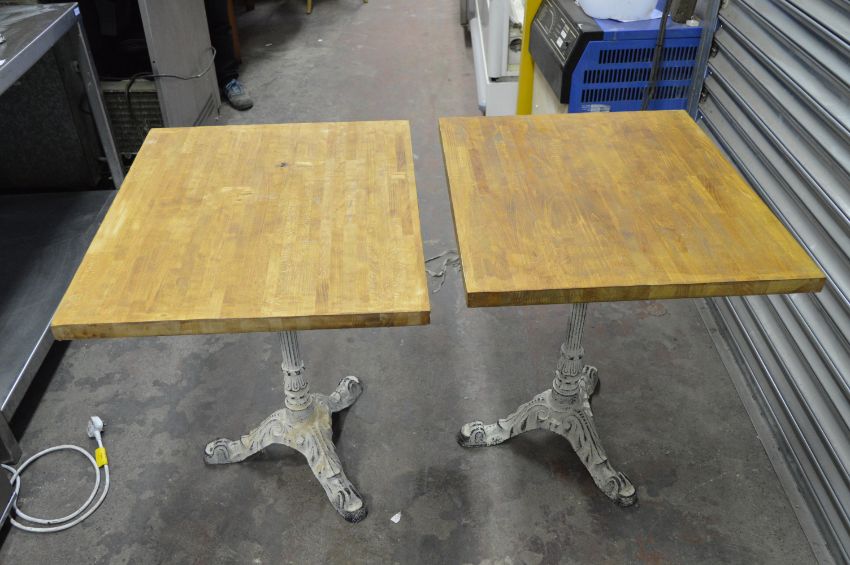Pair of Cast Metal Cafe Tables with Square Tops