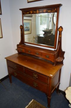 Victorian Mahogany Inlaid Dressing Table with Nouveau Handles