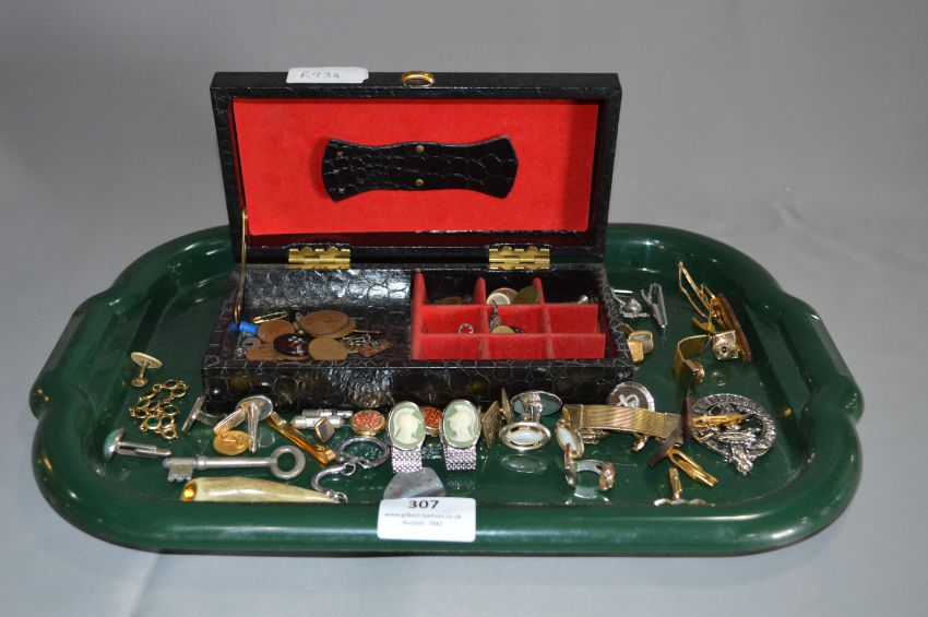 Costume Jewellery Box and Gentlemen's Costume Items; Cufflinks, Tie Pins, etc.