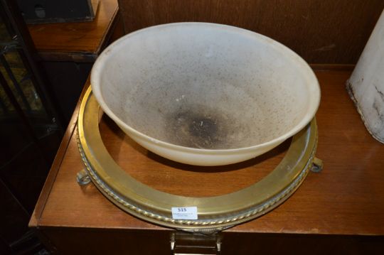 Circular Brass Framed White Glass Ceiling Light Fitting