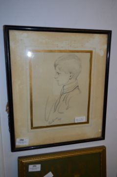 Framed Pencil Sketch "Young Boy" by Pat Bonney 1937