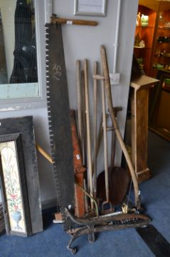 Collection of Vintage Gardening Tools and a Pair of Horse Yams