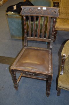 Oak Dining Chair with Carved Back and Barley Twist Legs