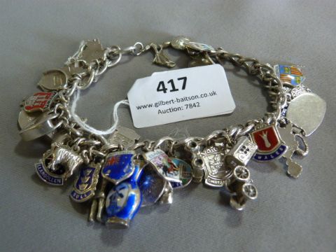 Silver Charm Bracelet with Enameled Charms Approx. 69.8g