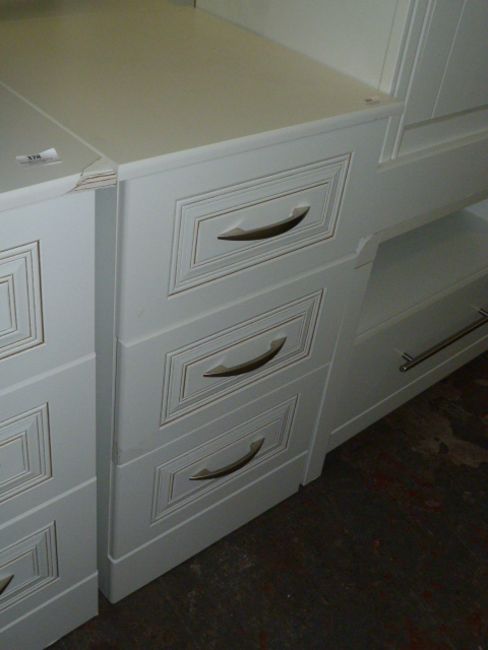*White Three Drawer Bedside Cabinet with Brushed Stainless Steel Handles