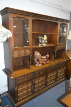 Large Oak Sideboard Wall Unit with Paneled Doors
