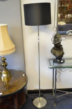 Brushed Stainless Steel Standard Lamp with Black Shade