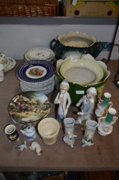 Quantity of Decorative China Including Ribbon Plates, Jardiniers, Wedgwood Decorative Plates "Rural & Country Scenes", Lladro Style Figurines, etc.