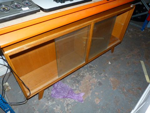 Teak Display Cabinet Enclosed by Sliding Glass Doors
