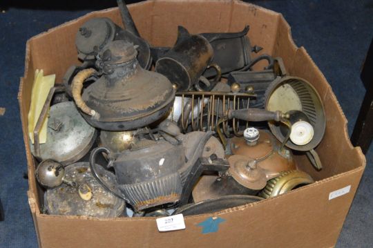Box Containing Silver Plated Tea Sets, Copper Kettles, Jugs, etc.