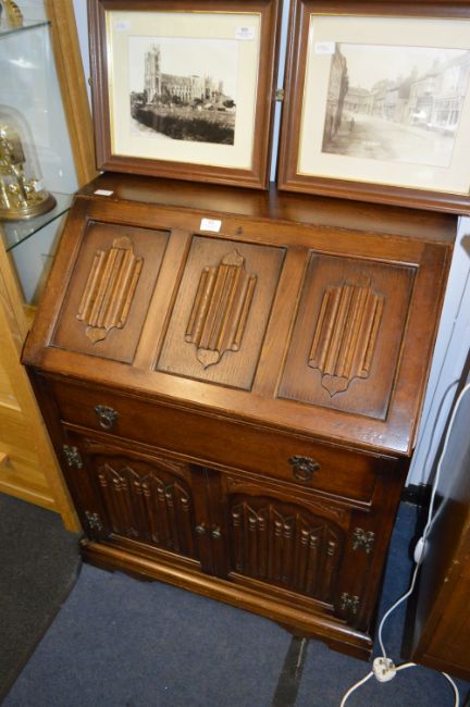 Oak Bureau with Line Fold Panels