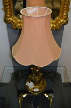 Brass Column Table Lamp and Shade