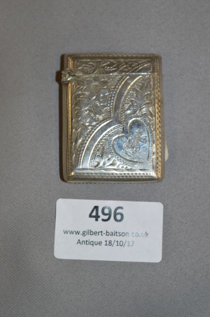 Hallmarked Silver Engraved Vesta Case Birmingham 1904 - 28 Grams