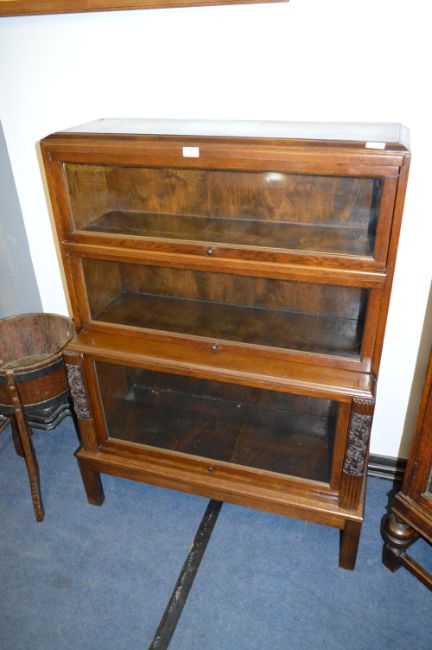 Oak Three Sectioned Bookcase with Fold Over Doors