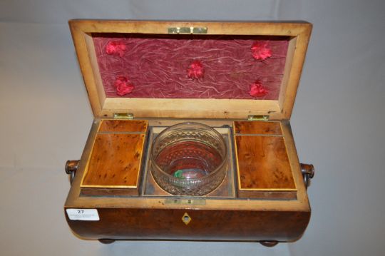 Early 19th Century Sarcophagus Shaped Tea Caddy with Fitted Interior