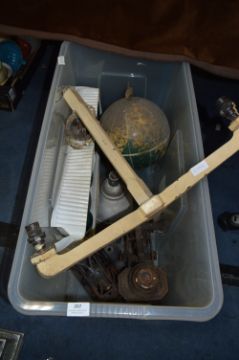 Box containing Scales, Ceiling Light Fitting, Globe, Glassware etc