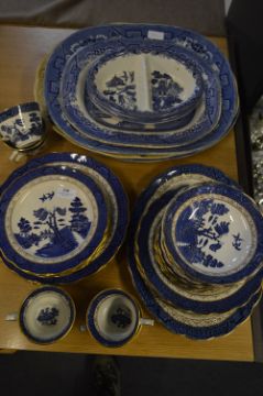 Royal Doulton and Booths Willow Pattern Dinnerware, Meat Plates, Side Plates, etc.