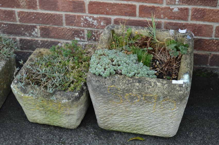 One Large and One Small Limestone Garden Planters