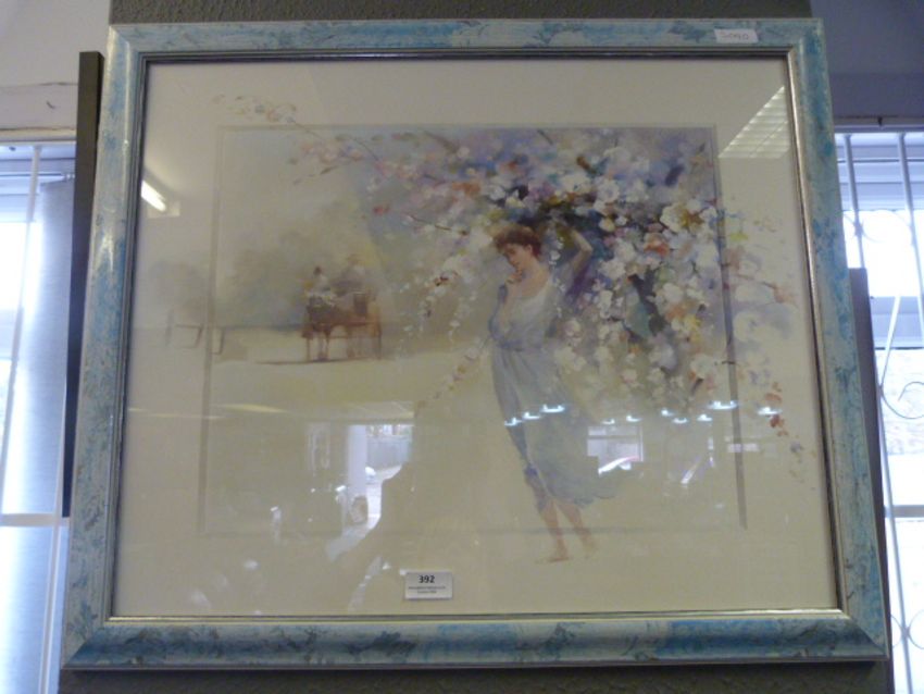 Decorative Framed Print "Lady and Blossom Tree"