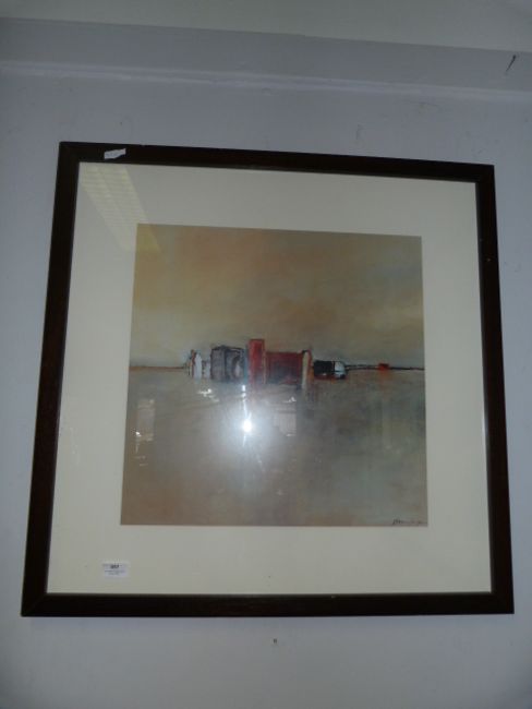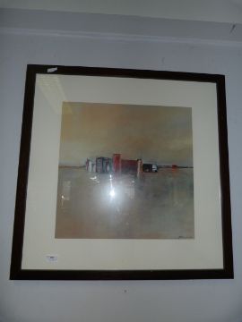 Large Framed Coloured Print "River Cityscape"