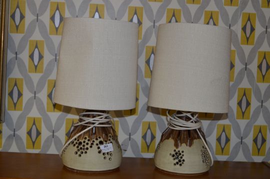 Pair of Studio Pottery Table Lamps with Shades