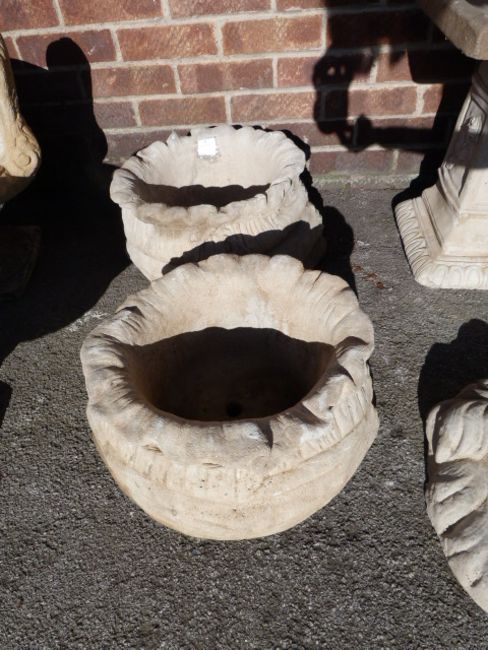 Pair of Reconstituted Limestone Planters in the Form of Sacks