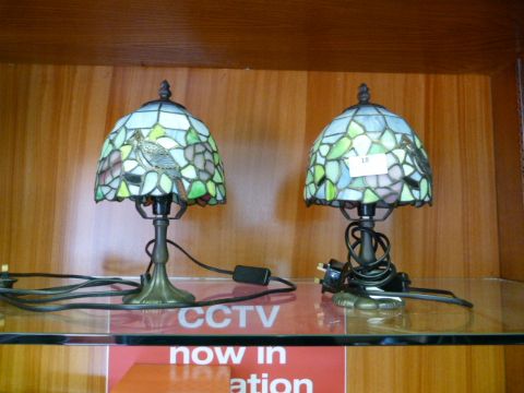 Pair of Tiffany Style Table Lamps with Kingfisher Shade