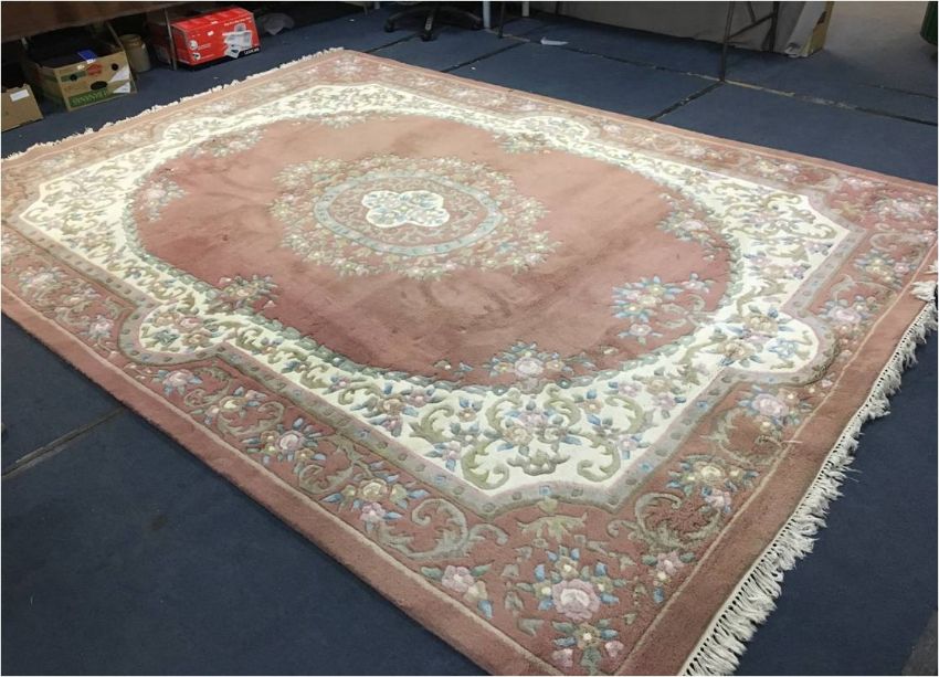 Large Pink Floral Patterned Chinese Rug 4'x9'