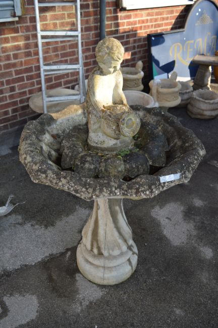 Large Concrete Fountain with Cherub
