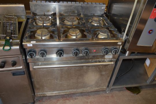 Six Burner Stainless Steel Commercial Cooker Over Oven