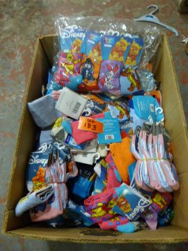 Box Containing Approximately 70+ Pairs of Children's Socks; Disney, Pooh Bear, Piglet, Bart Simpson, etc.