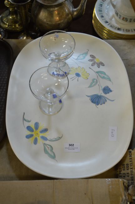 Poole Pottery Meat Plate and Two Babycham Glasses