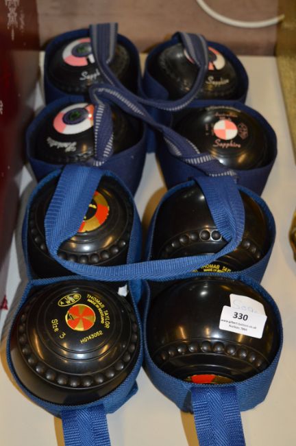Two Sets of Four Bowling Woods Thomas Taylor and Kenselite