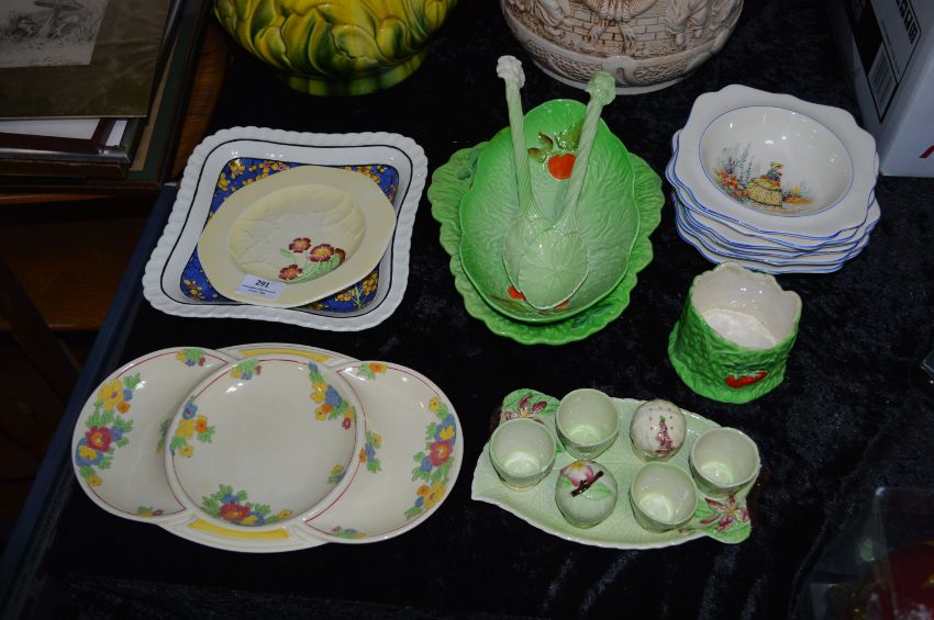 Table Lot: Carltonware Breakfast Set, Leaf Dishes, Royal Doulton, etc.