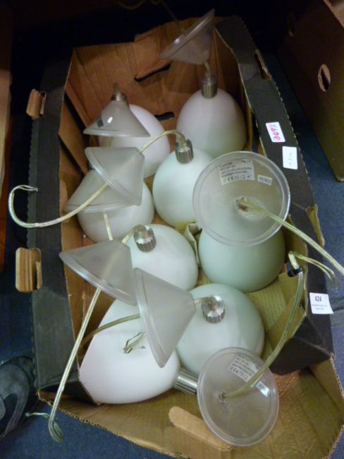 Set of Eight White Glass Ceiling Lights