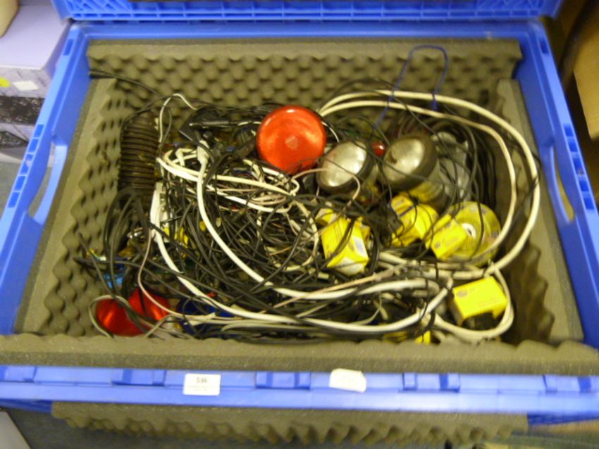 Large Storage Pots Containing Cables, Speaker Wires, Coloured Light Bulbs, etc.